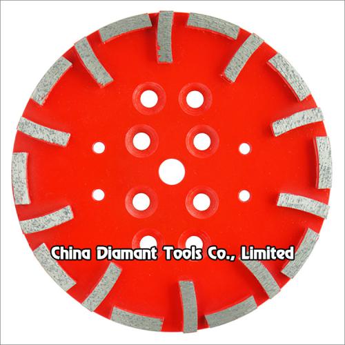 They are designed for removing hard epoxies and coatings, erasing concrete imperfections, leveling uneven spots or joints and smoothing rough or patched concrete surfaces. It has 10-20pcs curved shape diamond segments and it is very high efficient for grinding deep on the concrete terrazzo surface.