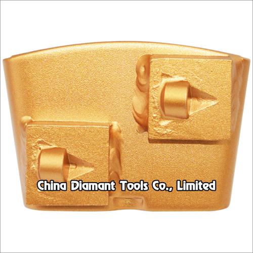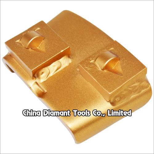 This type PCD grinding shoes with 2pcs 1/4 round,1/3 round or 1/2 round PCD segments are usually used on EZ change plate of HTC floor grinders for removing most types of coatings such as paint, varnish, glue, epoxy, acrylic, screed residue, VCT mastic, black tar adhesive as well as thick rubber materials on the concrete terrazzo floor.