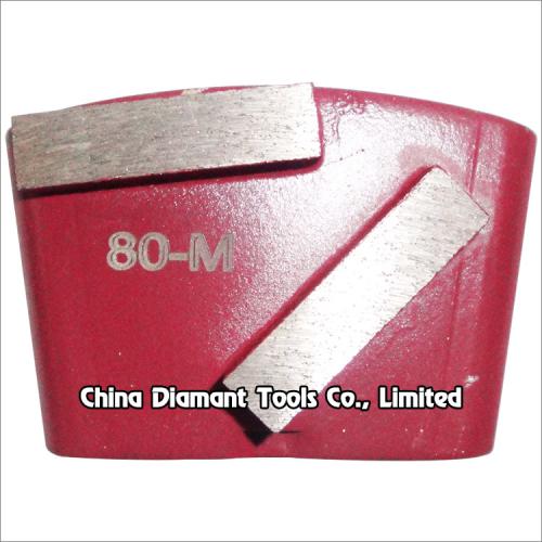 This type diamond grinding shoes floor grinding pads with 1 or 2pcs metal bond bar segments are usually used on EZ change plate of HTC grinder, suitable for general (concrete, terrazzo, stone) floor grinding use, while mostly they are used for paint, glue, epoxy removal and floor coating.