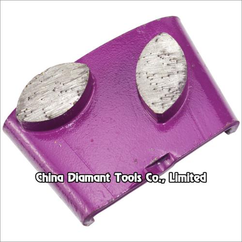 This type diamond grinding shoes floor grinding pads with 1 or 2pcs metal bond elliptic segments are usually used on EZ change plate of HTC grinder, suitable for general (concrete, terrazzo, stone) floor grinding use, while mostly they are used for paint, glue, epoxy removal and floor coating.
