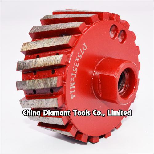 Diamond drum Wheels (also we call zero tolerance wheels) 1"(25mm) to 4"(100mm) segmented and twisted with water holes for aggressive milling grinding sink holes on the slab, kitchens, countertops, etc., which is the most effective way to grind and polish the tight radius.