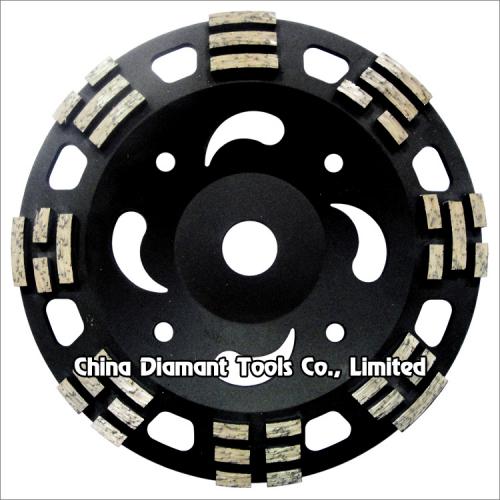 Diamond grinding cup wheels with long & short segments assembled 3 rows for grinding various concrete or other masonry materials such as stone, terrazzo, bricks, etc., ideal for smoothing and shaping as well as stock removal.