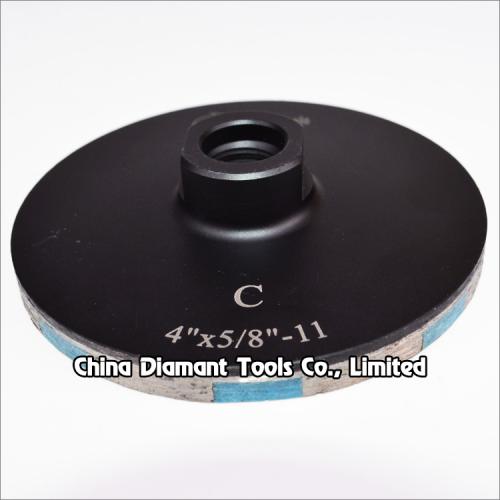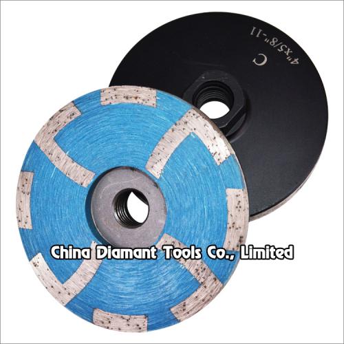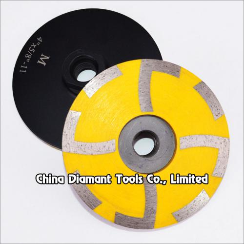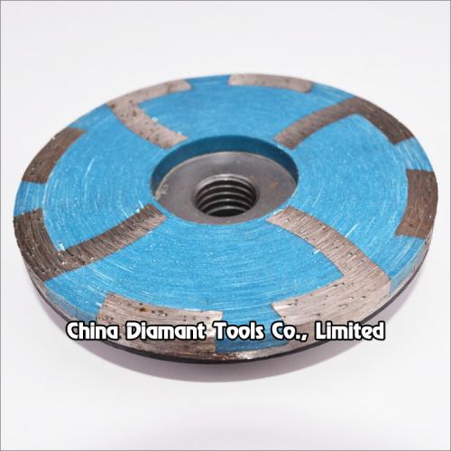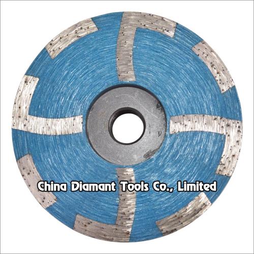 Diamond cup wheels with resin filled metal bond curved & L shape segments for grinding various stone such as granite marble, sandstone, limestone, artificial stone, etc., ideal for smoothing and shaping as well as stock removal.
