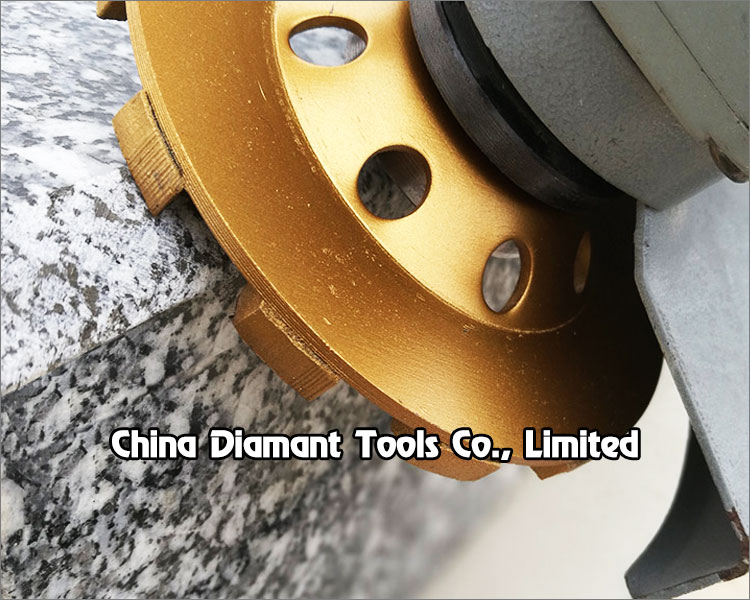 This diamond grinding cup wheels with turbo shape segments generally applicable to the grinding of various stone, marble, granite, ceramic, artificial stone, etc., especially suitable for the building decorated with concrete wall, marble floor, grinding edge of granite plate, chamfering and arc grinding, ideal for smoothing and shaping as well as stock removal.