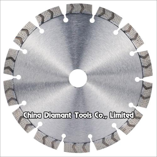 Laser welded general purpose cutting diamond dry cutters with matrix & arrow groove segments for fast dry cutting various hard, medium, soft stone such as granite, marble, sandstone, limestone, etc. without water or with less water, arrow grooves on the segments is benefit for fast coolant and chip removal.