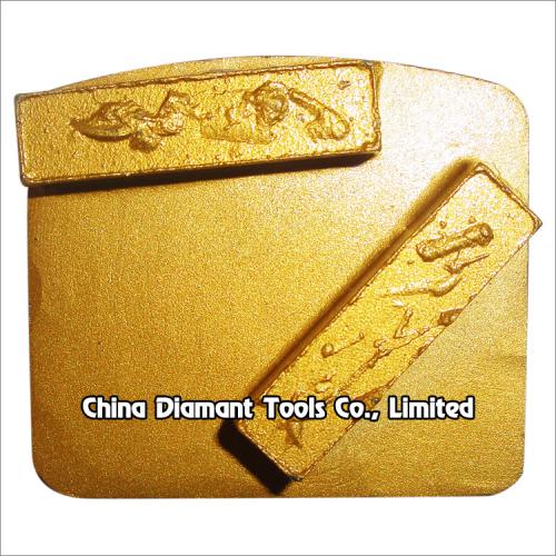 This PCD grinding shoe with 2pcs bar metal bond PCD segments is a floor polishing pad designed for redi-lock holder of Husqvarna grinders, it is used for removing most types of coatings such as paint, varnish, glue, epoxy, acrylic, screed residue, VCT mastic, black tar adhesive as well as thick rubber materials on the concrete floor.