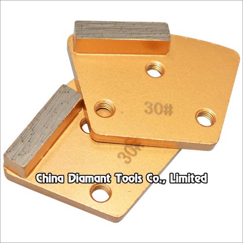 Trapezoid diamond grinding shoes with 1-3pcs bar segments, which is one of the floor preparation tools used on floor grinders, designed for floor grinding (leveling uneven spots or joints) and quick removing thin epoxy coatings, glue or other materials on floor surface, it is extremely aggressive leaving and deep to medium scratch pattern, taking the floor from coarsely structured surface to pre-polishing.