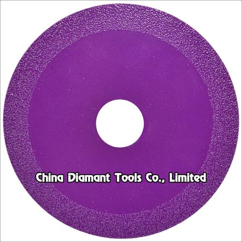 This type vacuum brazed diamond saw blades are specially designed for cutting sintered stone which is a very hard artificial stone with the Mons' hardness scale between 6-7, also it is suitable for smooth cutting, glass, jade, crystal, wine bottles, marble, ceramics, concrete and similar materials.