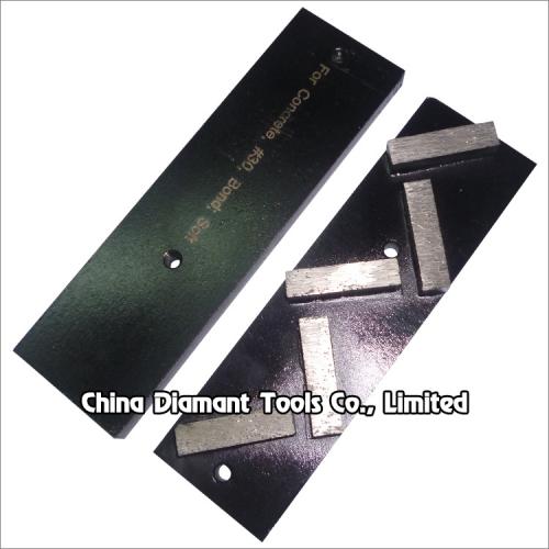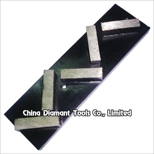 Diamond grinding block with 5pcs bar shape segments for rough leveling and grinding of concrete/terrazzo/stone floor, such as underground parking lot, factory floor, etc., to remove the attachment on its surface.
