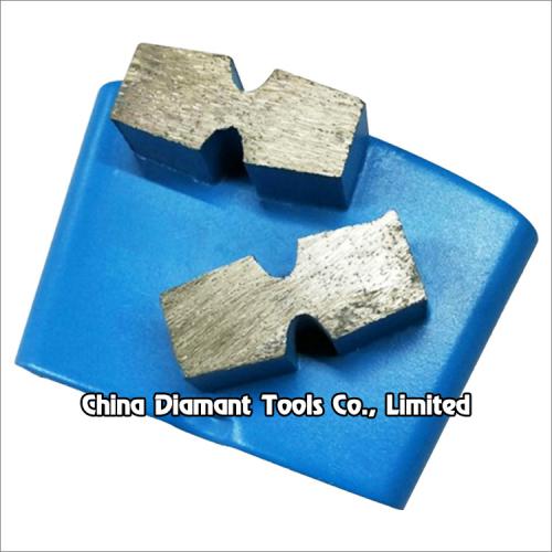 This type diamond grinding shoes floor grinding pads with 1 or 2pcs metal bond "8" shape segments are usually used on EZ change plate of HTC grinder, suitable for general (concrete, terrazzo, stone) floor grinding use, while mostly they are used for paint, glue, epoxy removal and floor coating.