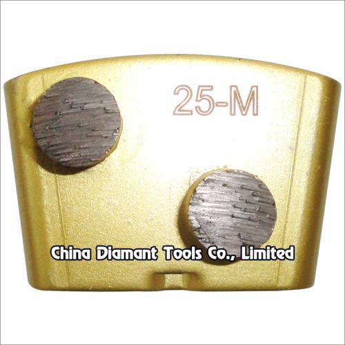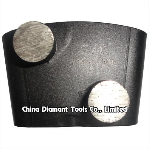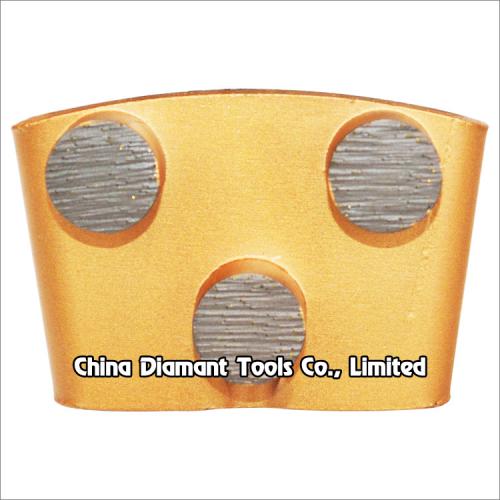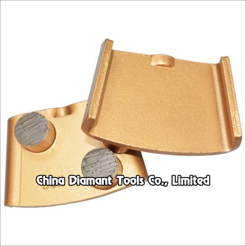 This type diamond grinding shoes floor grinding pads with 1-3pcs metal bond round segments are usually used on EZ change plate of HTC grinder, suitable for general (concrete, terrazzo, stone) floor grinding use, while mostly they are used for paint, glue, epoxy removal and floor coating.