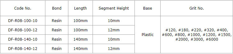 This resin bond glaze polishing diamond fickert(also called elastic fickert) with porous technology is usually used on semi or full automatic polishing machines for smooth polishing of ceramic tiles with the characteristics of good profiling, strong grinding power, high polishing gloss, no wear marks and long working lifetime.