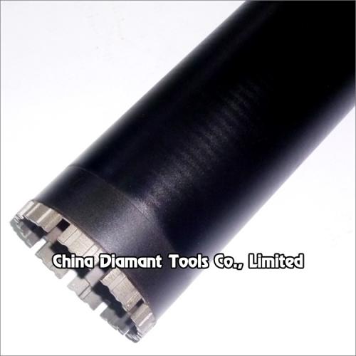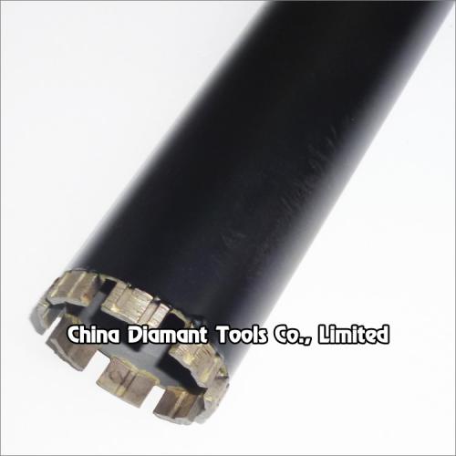 Diamond core drill bits with turbo segments silver or laser welded diameter 32mm-350mm provide smooth and fast drilling for various concrete of cured reinforced concrete with hard to soft aggregates, green concrete or abrasive materials, such as construction of bridges, high-rise buildings, wall, floor, etc., which have goods quantity of drilling holes, high performance in drilling difficult operation conditions, especially reinforced concrete with much steel bars or pebble stone.