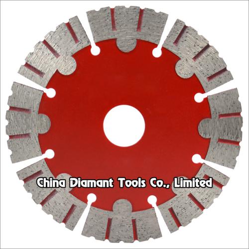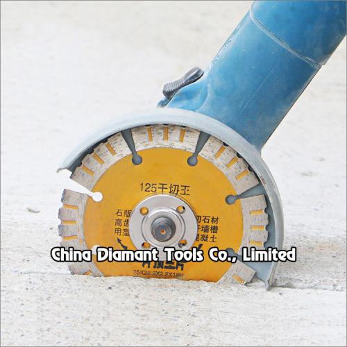 Hot press sintered diamond saw blades with crown & turbo segments for fast dry cutting various materials such as stone, concrete, asphalt, ceramic, bricks, etc. without water or with less water.