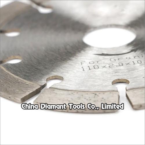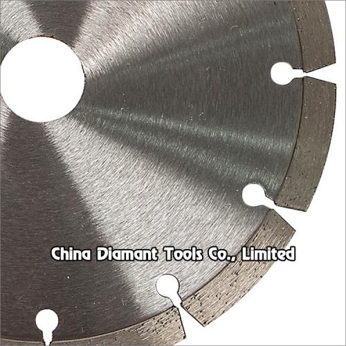 Hot press sintered diamond saw blades with normal flat segments for fast dry cutting various hard, medium, soft stone such as granite, marble, sandstone, limestone, etc. without water or with less water.