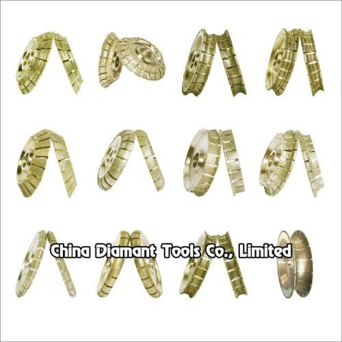 The electroplated diamond profile wheels are used for the trimming and grinding of marble, soft stones, ceramics, reinforced plastic, fiberglass, semiconductor and other composite materials. It is especially suitable for kinds of worktop slate's edge processing, usually used on large slate bridge sawing machine, also small size wheel is applicable for handheld electric tools and angle grinder.