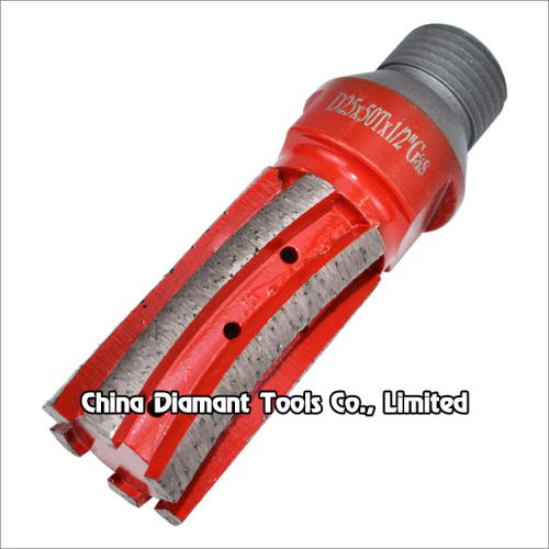 Diamond finger bits with metal bond curved segments are ideal for fast stock removal as well as truing up saw lines, which is usually mounted on CNC or radial arm machines, for hole grinding, anchor and blind hole, working as milling cutter for cutting any arc of granite marble or other stones.