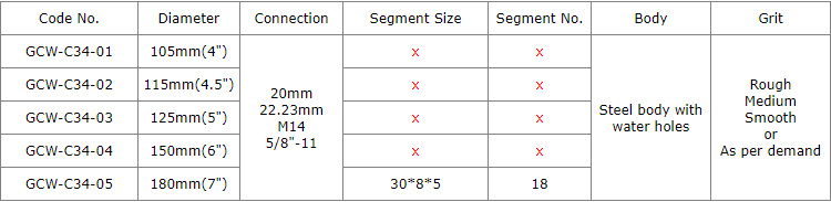 Diamond grinding cup wheels with assembled L shape segments for grinding various concrete or other masonry materials such as stone, terrazzo, bricks, etc., ideal for smoothing and shaping as well as stock removal.