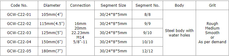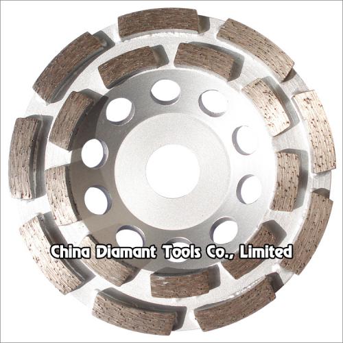 Double rows diamond grinding cup wheels for grinding various concrete or other masonry materials such as stone, terrazzo, bricks, etc. in wet or dry conditions, ideal for smoothing and shaping as well as stock removal.