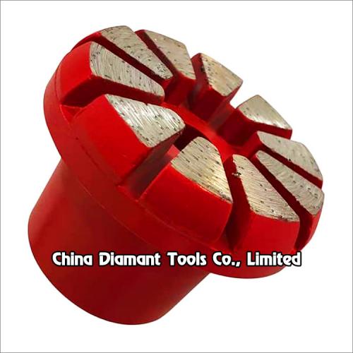 Diamond grinding plugs with 8-10pcs trapezoid shape diamond segments, usually used on Prepmaster/Floorex/Terrcoo floor grinders for aggressive concrete cleaning, smoothing, and coating removal, the segment helps transition over joints and leave a smooth profiles, remove dry or wet, rough & uneven spots on concrete or terrazzo surfaces.