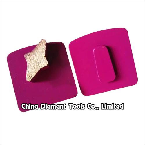 Diamond grinding shoe with 1 or 2pcs metal bond star shape segments used on redi-lock holder of Husqvarna grinders for rough leveling and grinding of concrete terrazzo stone floor, such as underground parking lot, factory floor, etc., to remove the attachment on its surface.
